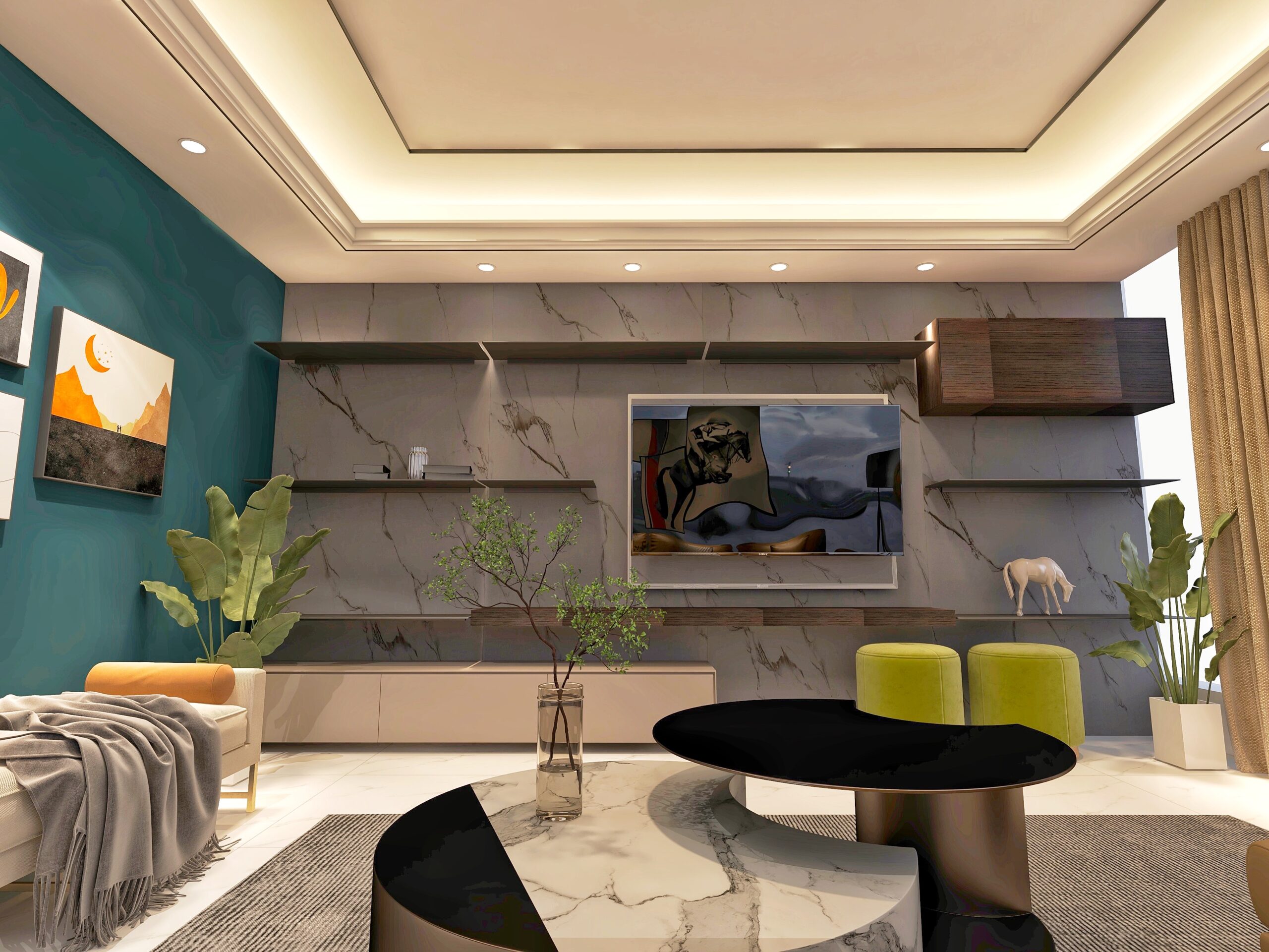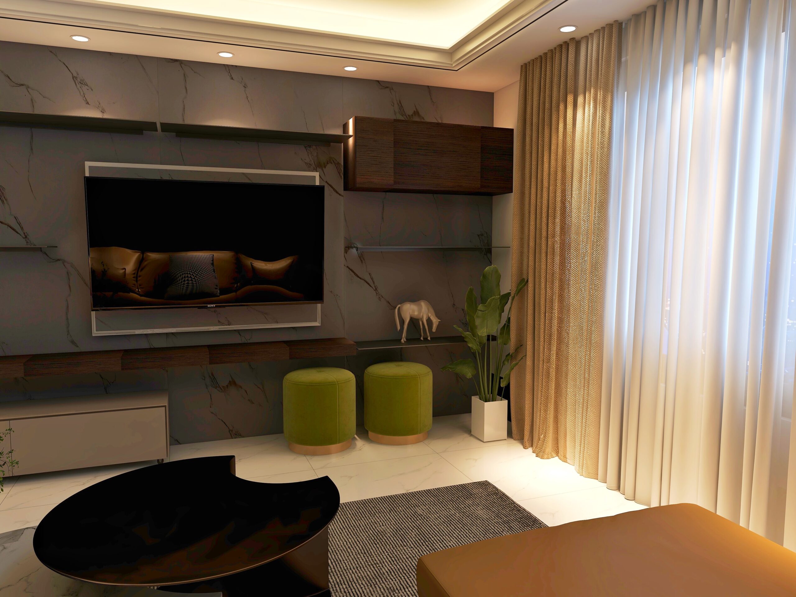 Diseñamos un salón de tv y entretenimiento para toda la familia, clásico, elegante y moderno cumpliendo todos los requerimientos de nuestro cliente. Jugando con colores neutros y colores profundos que permiten darle carácter al espacio.